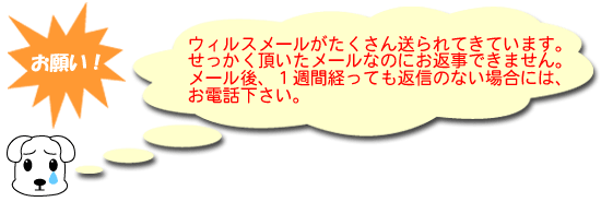現在、メールでのお問い合わせ多数のため、お返事まで日数がかかっています。